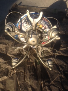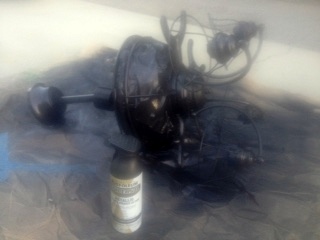 Beautiful, right? Best part? THEY WERE ONLY ASKING $40.00!!!! $40.00 PEOPLE! I was the first to respond, sent a PM and picked it up a few hours later. The only problem with it was the pewter color. Our room decor is cherry furniture, wrought iron, style. While the style would look great, the pewter color would not work. Well, there’s nothing that a good ole’ can of spray paint won’t fix!
